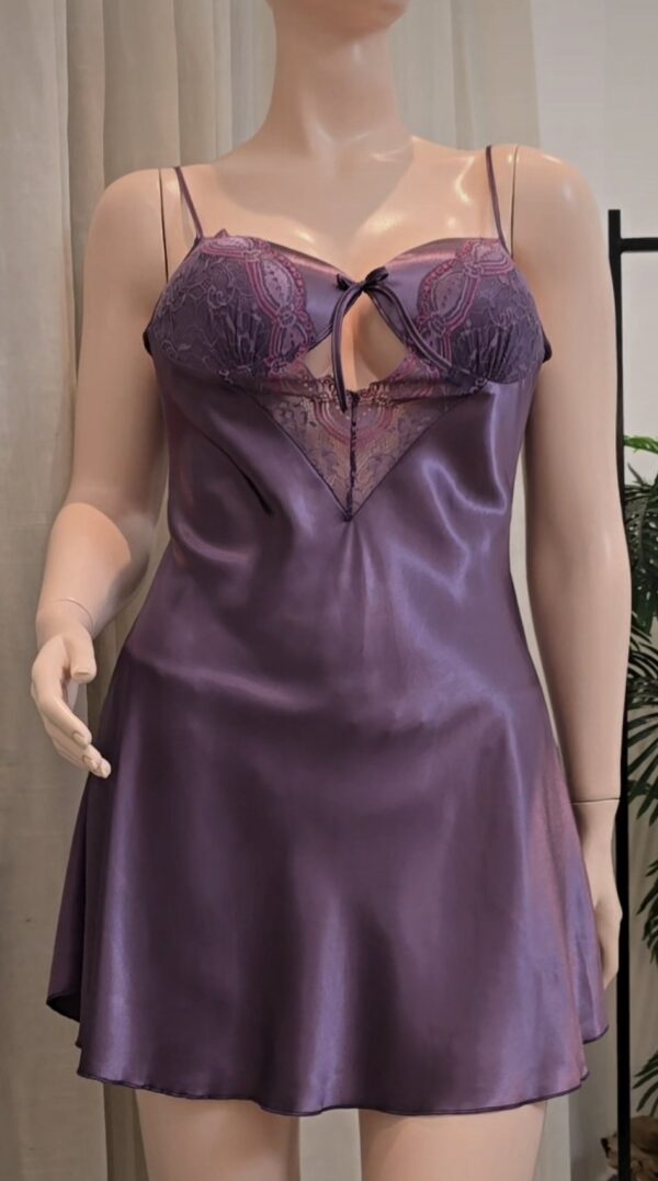 بيبي دول ساتان حرير مشغول من الصدر بالدانتيل ومن الخلف مع البانتي